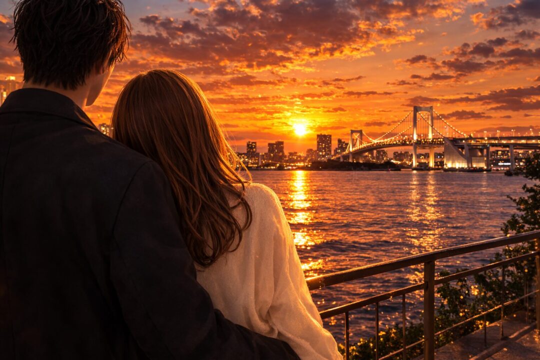 空がオレンジ色に染まり、東京湾の水面がキラキラと光る時間。